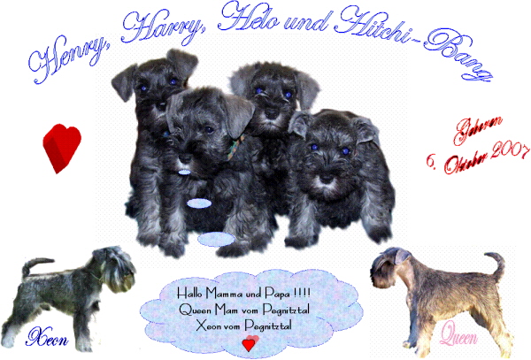 Am 13.03.2008 bin ich Papa von 1 Rüde und 3 Hündinnen geworden.
